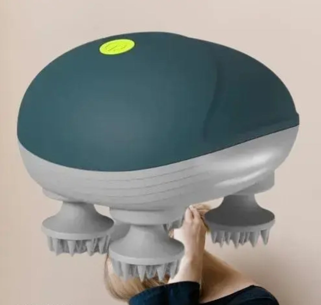 Rechargeable 360° Electric Scalp Massager | Stress Relief & Hair Growth Tool with Detachable Kneading Heads