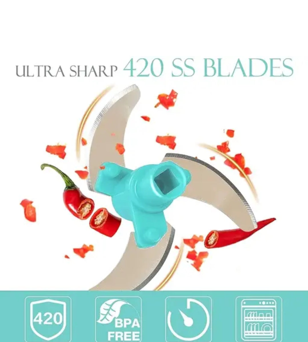 Extreme Speed (5 Blades!): Unlike basic models, this chopper is equipped with five ultra-sharp, stainless steel blades. This design multiplies the cutting action, allowing you to dice and mince ingredients up to 5 times faster than cutting by hand.